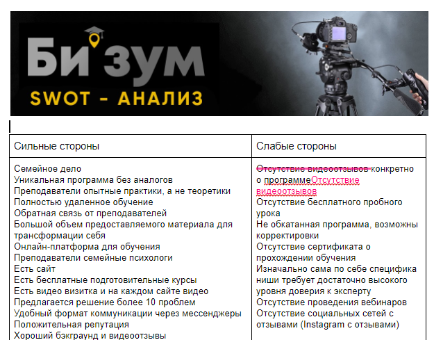 Мы выявили сильные и слабые стороны проекта, а так же оценили все риски запуска с учетом конкурентной ниши. Прописали стратегию запуска онлайн-школы, а так же сделали ставку на очень глубокую и качественную программу.